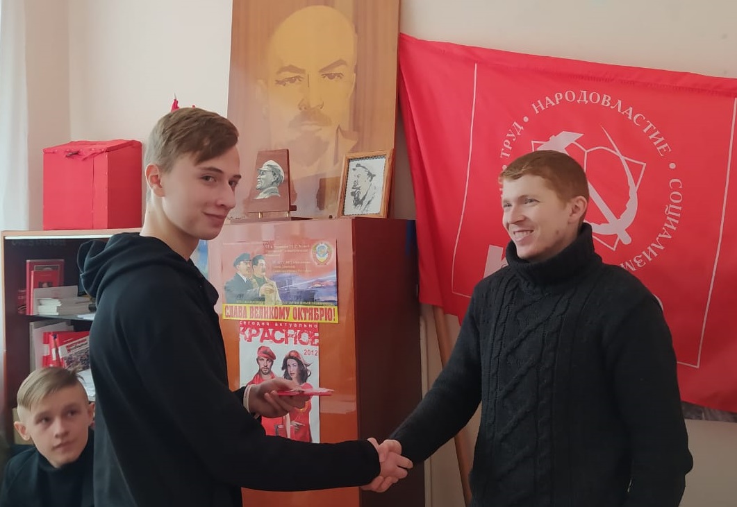 В начале ребята ответили на вопросы о содержании «Манифеста Коммунистической партии» и Устава ЛКСМ, после чего им были вручены членские билеты.