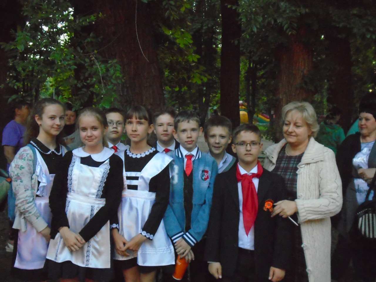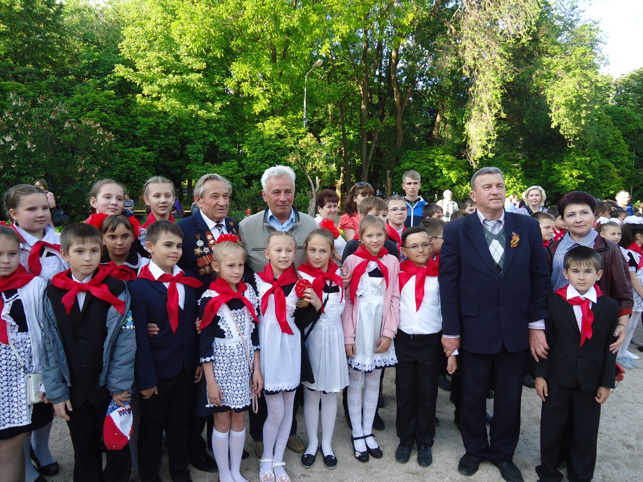 Затем почётные гости и комсомольцы из техникума «Знание» повязали пионерские галстуки вновь вступившим в организацию ребятам. А рядом стояли бабушки и дедушки, вытирали слёзы, вспоминая годы, когда они сами были пионерами…