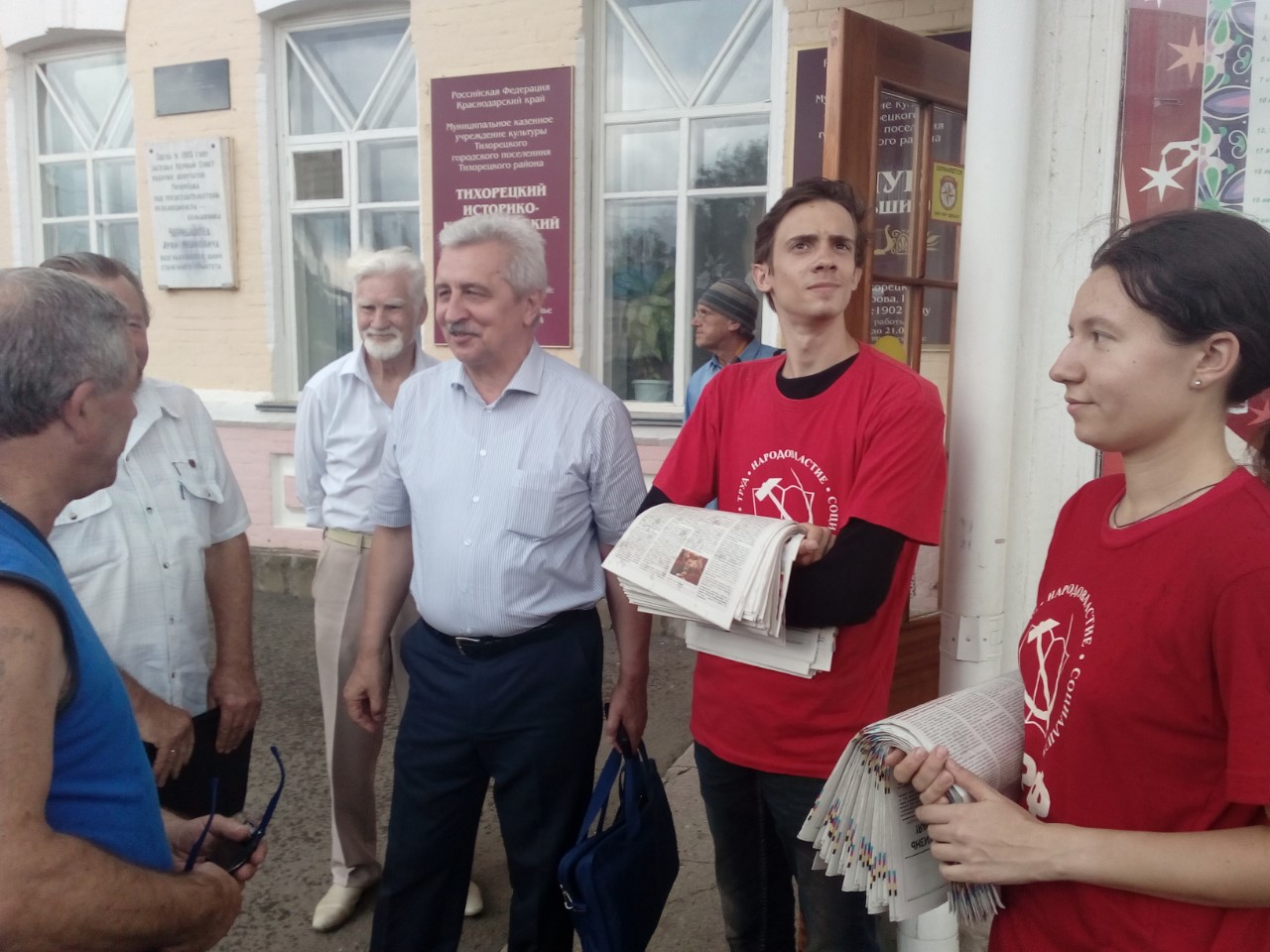 В Тихорецке в доме культуры им. Меньшикова прошла предвыборная встреча. Ее организовал районный Комитет КПРФ, а провели кандидаты в депутаты Законодательного Собрания края, выдвинутые краевым отделением партии, – лидер кубанских коммунистов Николай Осадчий и два представителя молодого поколения партийцев: Артем Белобрицкийй и Сергей Уваров.