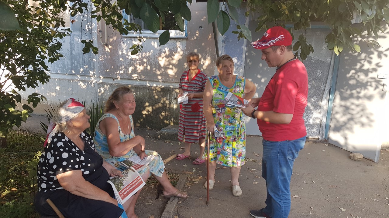 В ходе встреч велась агитация за кандидата и КПРФ, раздавались агитационные материалы, а также собирались наказы избирателей своему будущему депутату.
