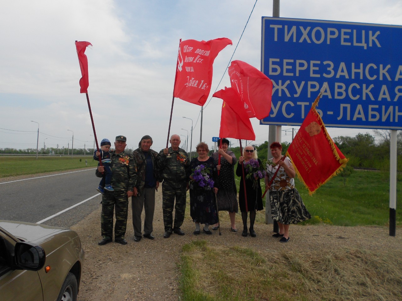 Активисты Выселковского районного отделения КПРФ и Союза Советских офицеров Кубани организовали и провели автопробег под красными знаменами.