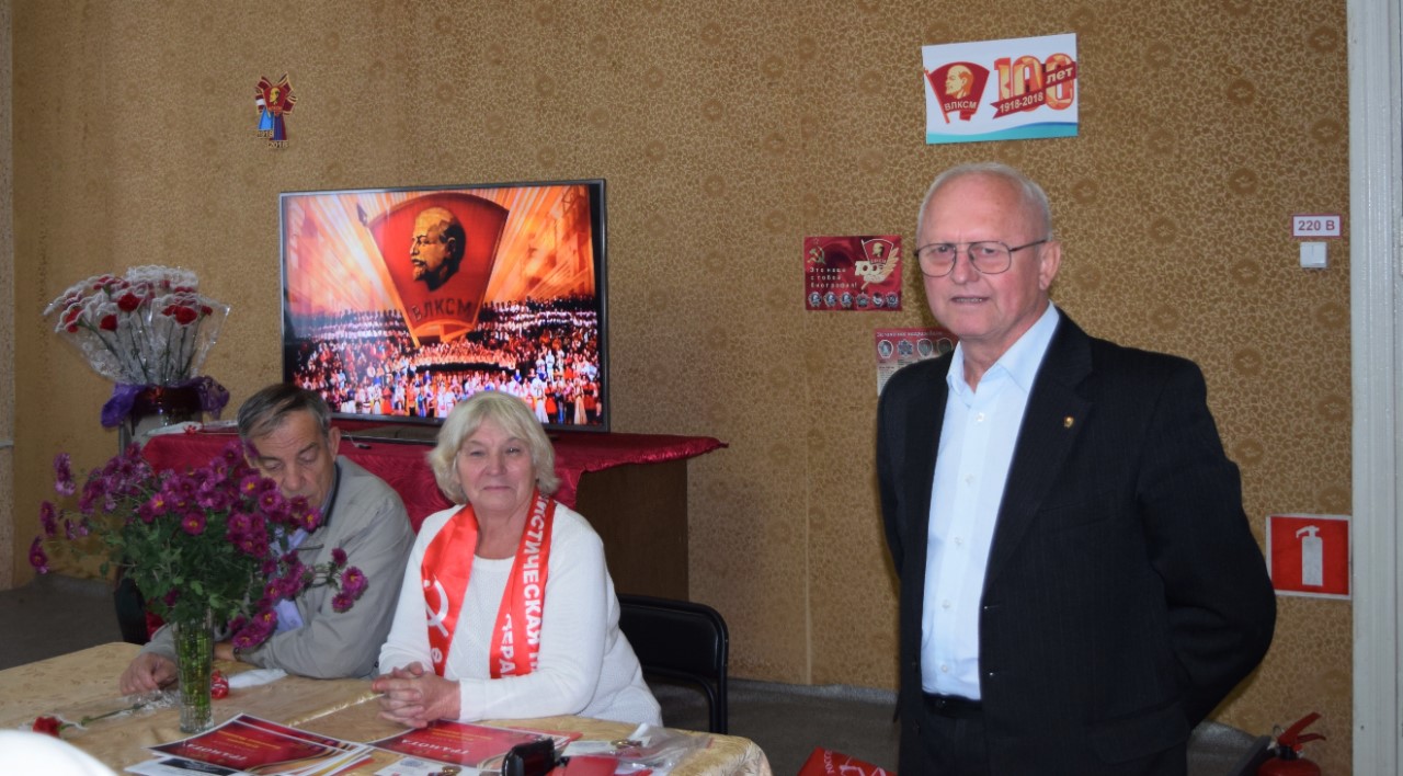 Участникам встречи были вручены памятные медали «100 лет комсомола», грамоты райкома КПРФ и цветы.